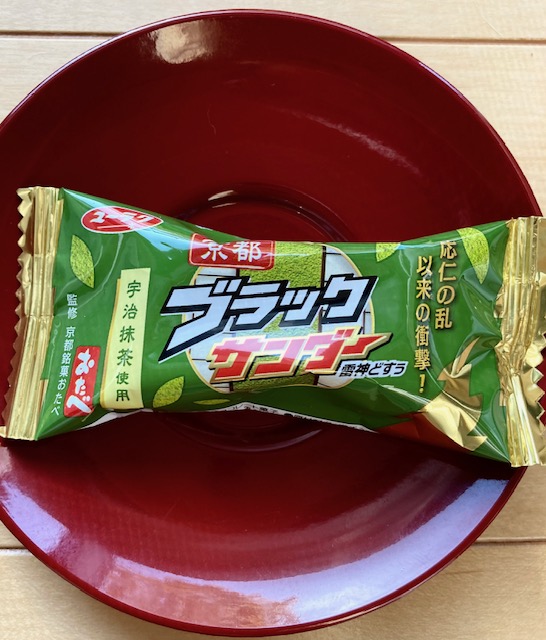 面白いと言えば最後にこちら。関西の実家に帰っていた職場の若いスタッフがお土産に買ってきてくれたお菓子です。京都銘菓おたべ監修の抹茶のブラックサンダーの個包装の袋には「応仁の乱以来の衝撃!」これを見て私も含めて数名がコピーを見ては「人よむなしい(1464)応仁の乱」と思わず口にしておりました。
