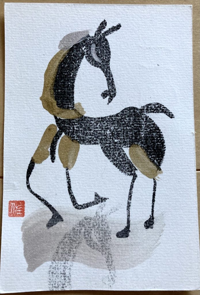 疲れた目を休めるついでに今年頂いた年賀状を見返していたら、爽子さんの麗しい馬の版画の年賀状が登場。