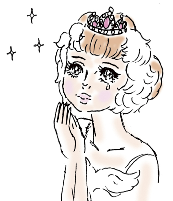 星がたくさんの大きな瞳に涙を浮かべて頑張る主人公。